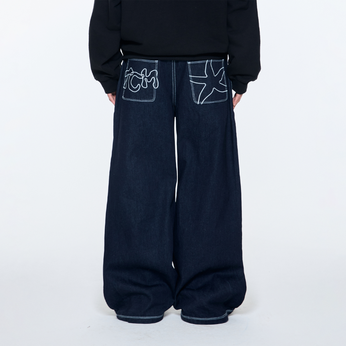 TCM back logo denim pants (navy)