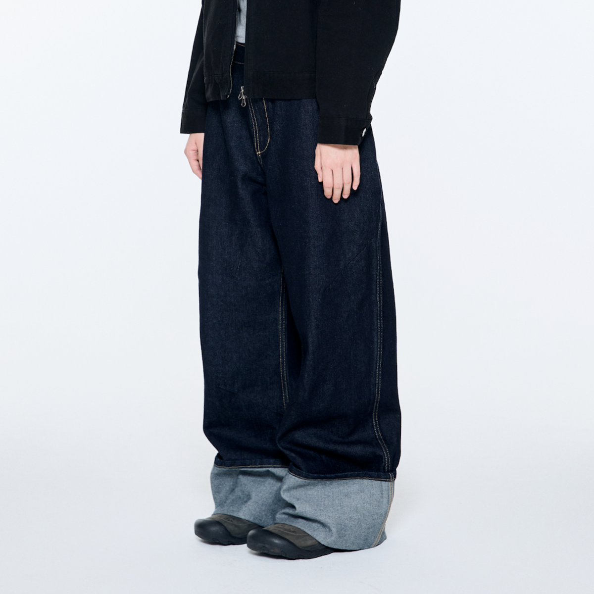 TCM curved raw denim pants (blue)